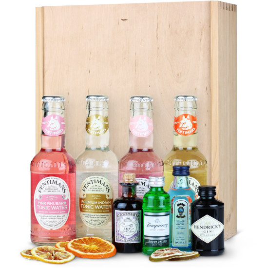 Een origineel cadeau versturen naar vrienden, familie, zakelijke relaties, klanten of het personeel? Een Gin Tonic pakket van Charles is hiervoor de juiste keus! Het verrassende assortiment bestaat uit diverse luxe houten kisten, gevuld met de lekkerste gin en de beste tonic. Ieder pakket bevat tevens een bijpassende garnering, zoals gedroogde limoen, citroen, kruidnagel of pompoenpitten. Met de bijgeleverde instructies is een heerlijke cocktail in een handomdraai bereidt. Kortom, een compleet cadeau dat door velen gewaardeerd zal worden! Geef een Gin Tonic pakket als verjaardagscadeau, relatiegeschenk, eindejaarsgeschenk of natuurlijk als spontaan cadeautje voor een echte liefhebber! Toch liever een ander type geschenk. adviseren we je onze mousserende wijn en cava van MessageBottle te bekijken.