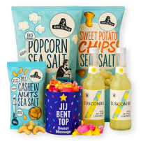 Verras collega’s of zakenrelaties met het vrolijke Good Things in Life Jij Bent Top cadeaupakket. Een zomerse traktatie boordevol verfrissende en gezonde lekkernijen, zoals biologische popcorn en zoete-aardappelchips van John Altman, aangevuld met cashewnoten met zeezout en verfrissende Sicilian Lemonade van Luscombe.